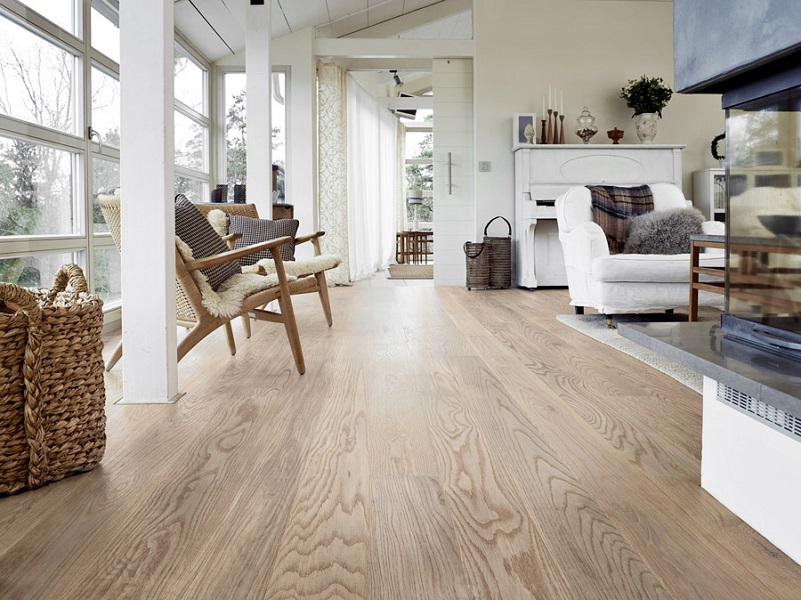 Kar zadeva barve parketa, je skandinavski slog notranjih dekoracij v zadnjih nekaj letih nepogrešljiv, zprav tako je parket v svetlih in snežno belih tonih.